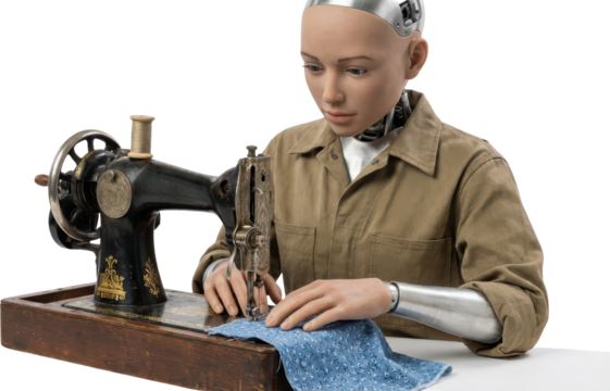 Vintage sewing machine isolated on transparent background, a retro tailoring tool for fabric and textile work, a classic piece of industrial design