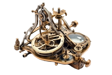 Artistry in an ancient sextant cut out on PNG. AI GENERATED.