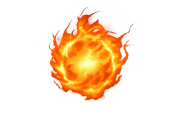 Fiery explosion sphere creating intense burning energy with glowing orange and yellow flames on transparent background