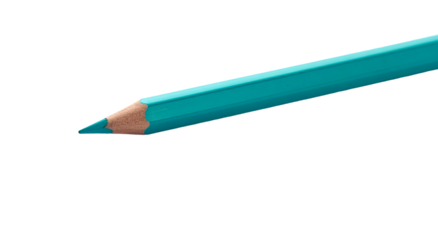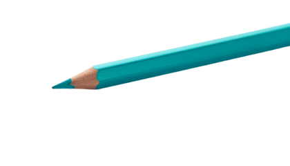 A close-up of a teal-colored sharpened pencil against a stark black background