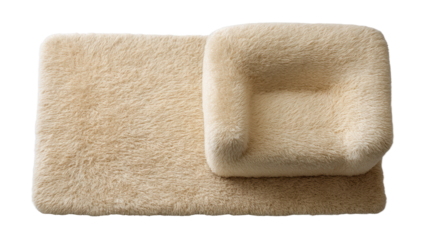 A fluffy white rug with a shaggy texture, featuring long fibers that create a cozy and inviting appearance. isolated on white background and transparent background