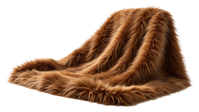 brown fur isolated on white background. natural animal hair skin texture material furry fluffy and soft wool shaggy warm fashion isolated on white background