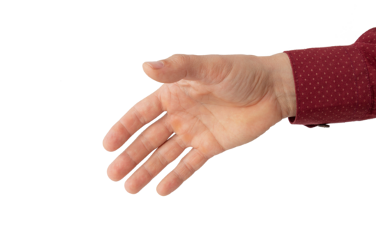 Close-up of human hands in handshake symbolizing cooperation isolated on white transparent background