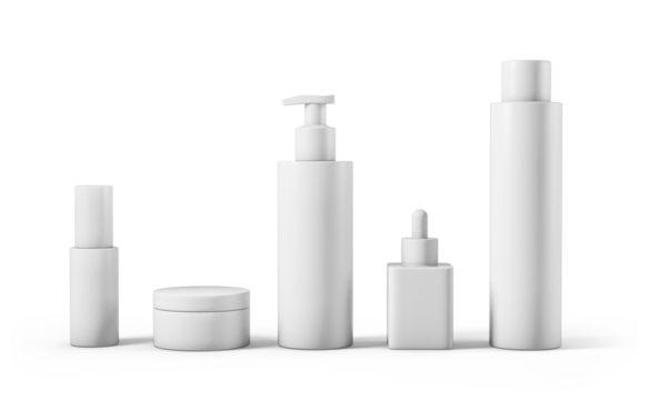 Transparent cosmetic bottles assortment design