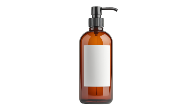 Amber Pump Bottle Mockup - Blank Label, Transparent Background for Branding & Packaging Design