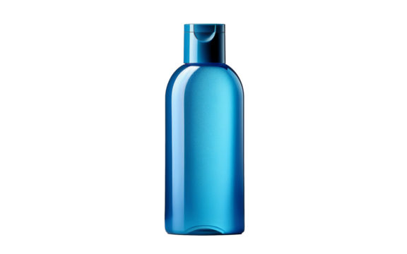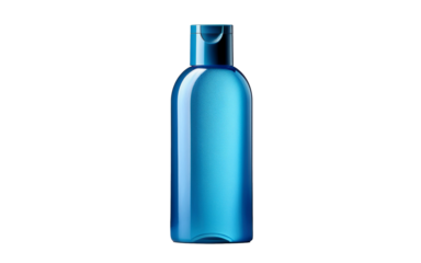 Un flacon bleu sur fond transparent.