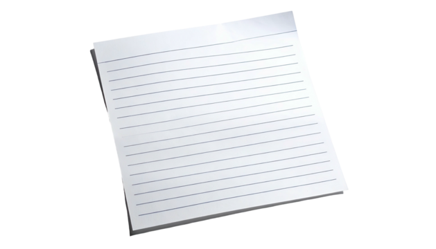 A stack of blank, ruled paper in a square shape, slightly angled on a black background