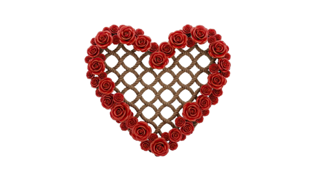 Intertwined red and white strands forming a symbolic heart shape on a dark background isolated on transparent background