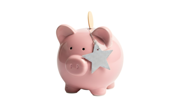 Cute pink pig shaped candle with a lit wick and a star detail on a black background