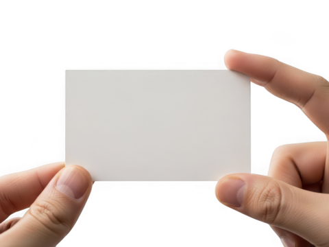 Hands holding blank business card isolated on transparent background