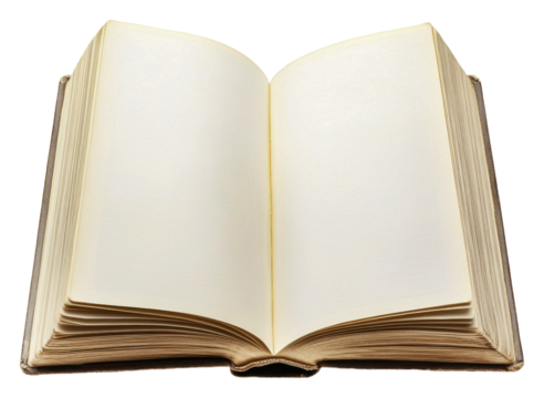 Open book with blank pages isolated on a transparent background