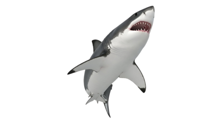Majestic Great White Shark with Open Mouth Isolated on White Background