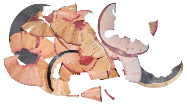 Multicolored wooden shavings from pencils on isolated background
