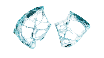 Shards of shattered glass. Pieces of broken glass isolated. Transparent background PNG. Pen tool cutout. Glass explosion.