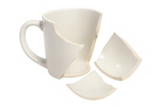 Oreo cookies falling down, flying around, from different angles, on a transparent background - A broken clock face with shattered glass fragments, set against a white background.