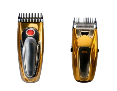 Golden hair clipper and silver hair clipper side by side isolated on transparent background