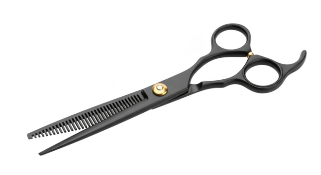 Sleek dark thinning shears gleam softly