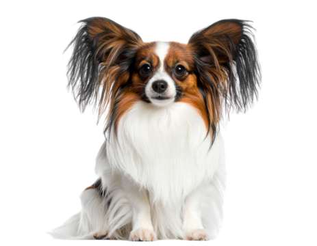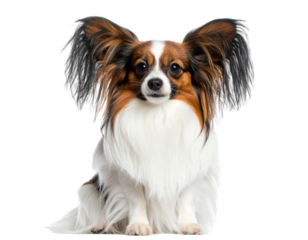 Papillon Sitting Gracefully, Front View, Isolated on Transparent Background.
