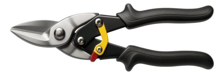 Compound action sheet metal shears with serrated blades for enhanced grip, used in automotive body repair.