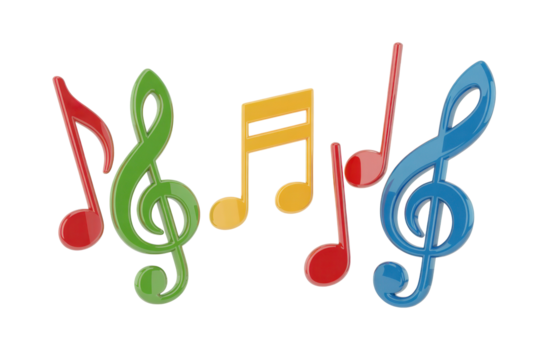 Musical notes floating on transparent background