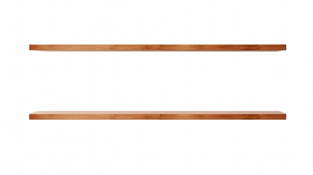 Minimalist wooden floating shelves isolated on a white background, ideal for home decor and storage solutions in modern interiors.