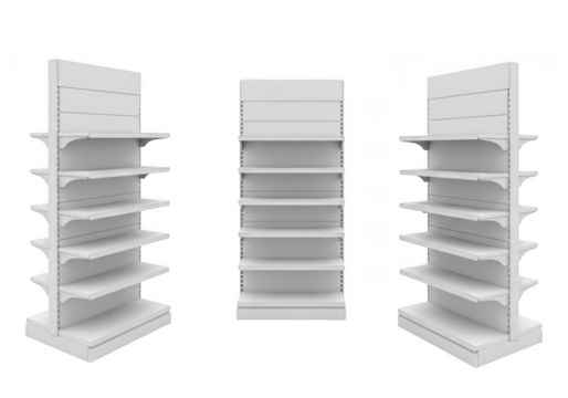 Three empty simple minimalist shelves made of light wood is isolated with copy space.