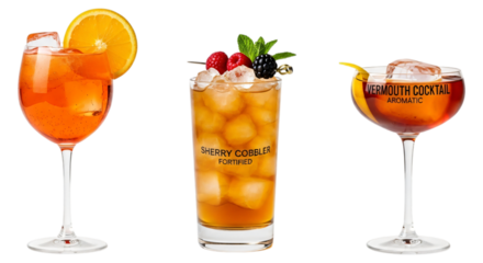 Sherry cobbler cocktail isolated on transparent background, set of