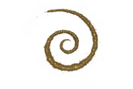Golden glitter spiral forming a magical vortex, shiny dust creating a sparkling effect on transparent background