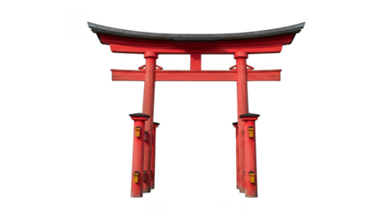 Traditional japanese torii gate made from wood, cultural symbol of shintoism and spiritual entrance, transparent background