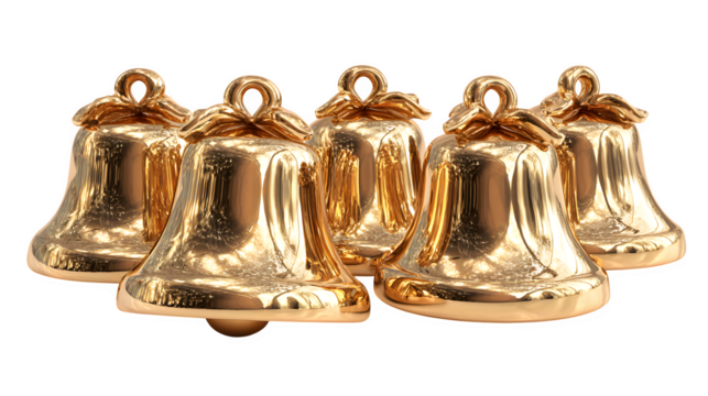 Festive christmas bells with holly and ribbons for holiday celebrations design on transparent background
