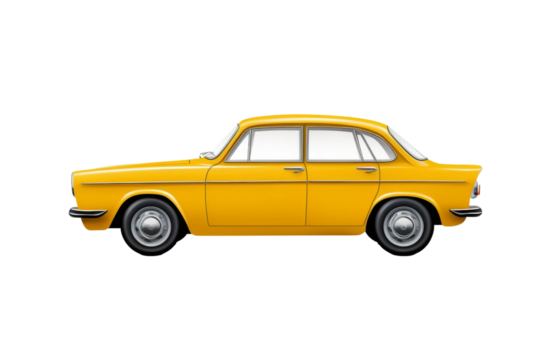 Yellow Car on White Background. On a White or Clear Surface PNG Transparent Background..