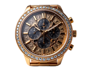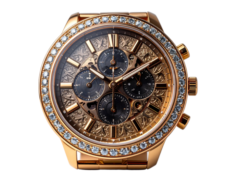 Luxury Rose Gold Chronograph Watch with Diamond Bezel.