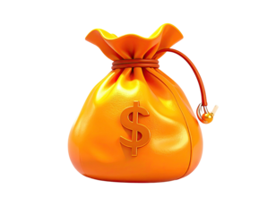 Shiny orange bag with dollar sign against a black background