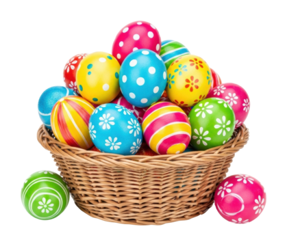 Colorful easter egg display basket festive isolated on transparent background