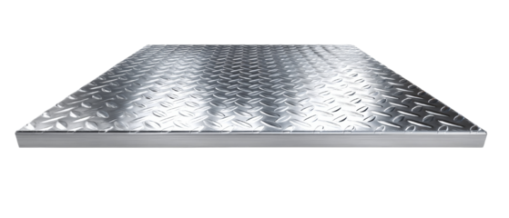 Elevated perspective of textured metallic platform against an isolated transparent background for