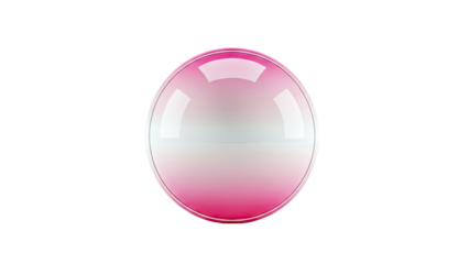 Glossy pink and white sphere with metallic rim on white background