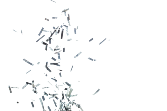 Falling silver glitter confetti isolated on transparent background