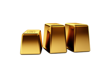 Trio of Gleaming Gold Bars on Transparent PNG Background.