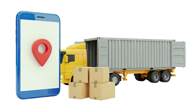 Delivery Truck, Boxes, and Smartphone with GPS Pin