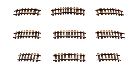 Pack Train Track Set in Different Poses on Transparent Background for Railway, Infrastructure, and Transport-Themed Designs
