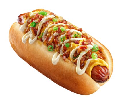 Delicious loaded hot dog recipe street food culinary delight isolated on transparent background