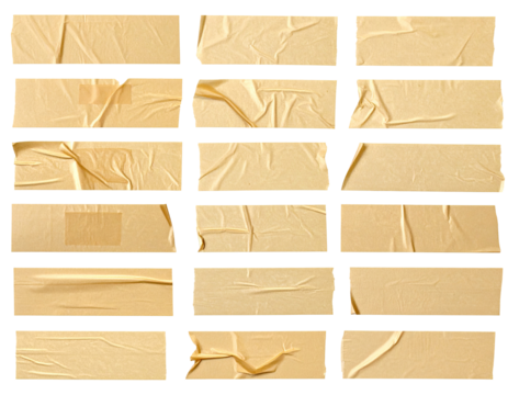 Flat lay of three shipping labels with different sizes, isolated on a transparent background