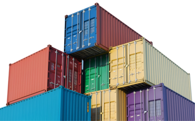 Cargo port for unloading containers from ships. International trade. Vector illustration