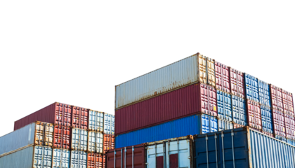 Colorful Stacked Shipping Containers on a Transparent Background for Transport and Logistics Concepts