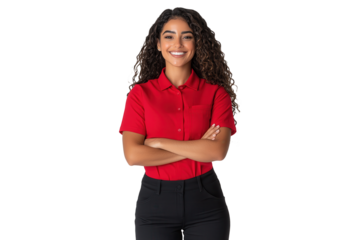 Transparent background smiling man in casual red shirt