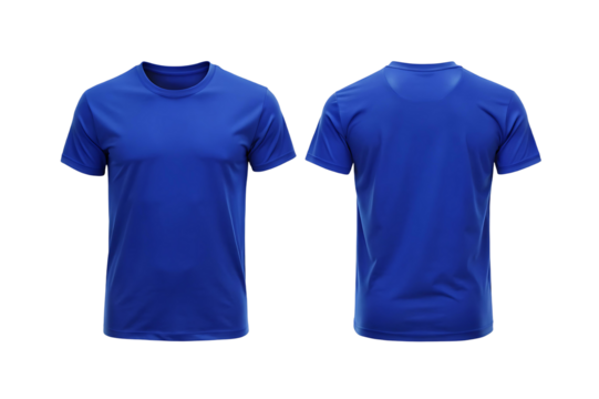 Blue t shirt front and back isolated on transparent background.