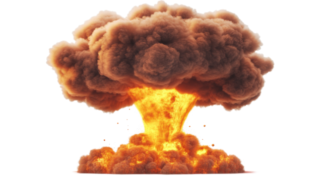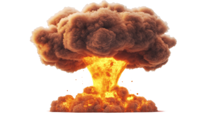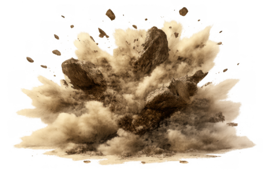 Explosion casting dust and debris, a powerful blast creating destruction, impact, and dynamic burst with transparent background
