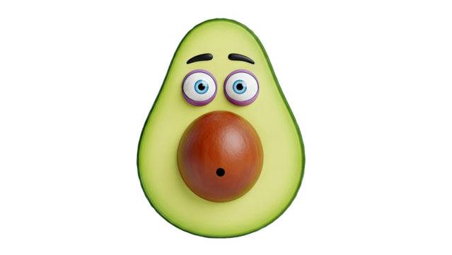 Silly yellow emoji face with wide eyes isolated on transparent background