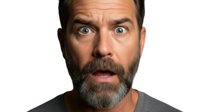 PNG shot of a handsome mature man standing alone against a grey background in the studio and looking shocked