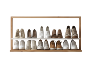 Wooden shoe rack footwear collection footwear display footwear storage shoe organizer footwear fashion shoes footwear shop footwear store footwear style isolated on transparent background